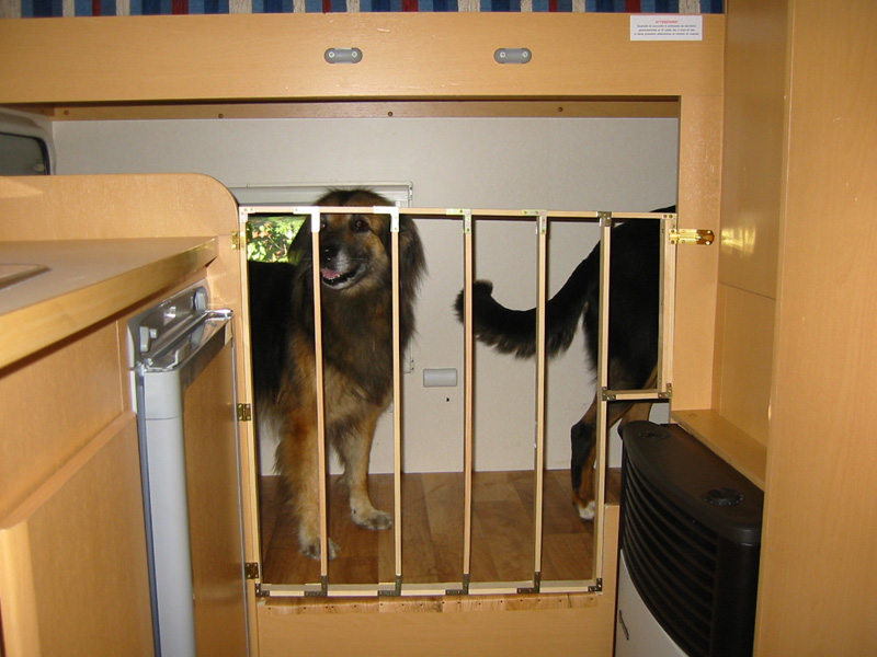 Pedy und ich haben ja nun schon etwas Erfahrungen mit Urlaub im Wohnmobil. Leider gibt es da schnell ein Problem mit Sunny. Viele Wohnmobilvermieter mögen keine Hunde in ihren Fahrzeugen. Für unseren Norwegenurlaub konnten wir z.B. nur die kleinste Größe, einen Lieferwagenumbau mieten, weil die größeren Mobile zu "plüschig" sind und daher Hundehaare besonders stören. Inzwischen haben wir eine kleine Spezial-Wohnmobilvermietung gefunden, die ein Wohnmobil speziell zur Mitnahme auch von großen Hunden umgebaut hat. Ein Problem eines Standardwohnmobils ist die Fehlende Bodenfläche. Da jeder Raum genutzt ist, ist meistens nur unter dem Tisch und im Gang Platz für den Hund. Wauwiemobil hat in einem Wohnmobil mit Etagenbett das untere Bett zum Hunderaum umgebaut. So hat der Hund fast 2 m² Platz. Der Hunderaum hat ein Fenster, 2 Türen nach draußen und einen mit Holzgitter verschließbaren Durchgang zum Wohnraum.